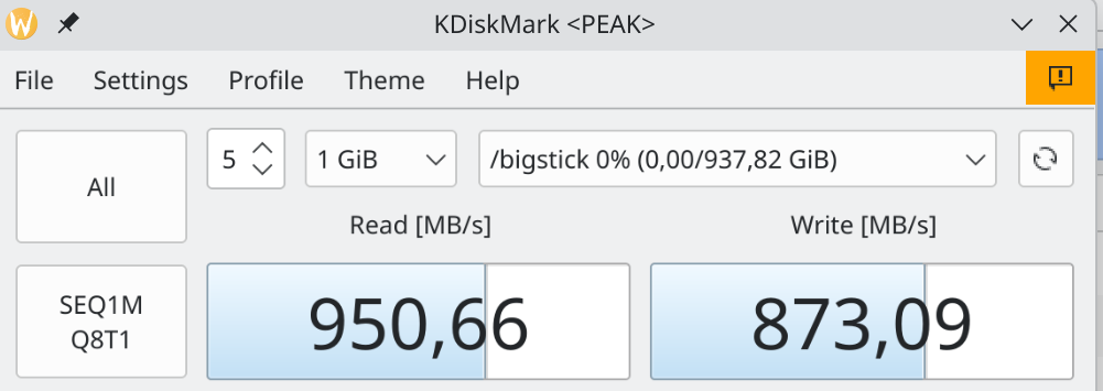 Formatted as ext4 I’m seeing throughput close to 1 GB/s - which makes it a pretty solid “Desktop SSD”.