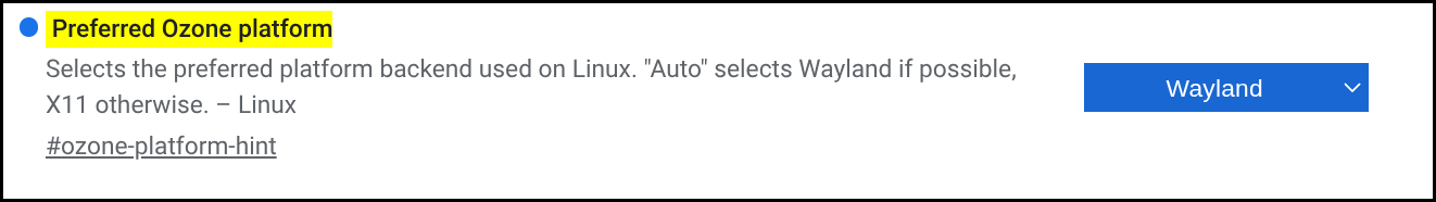 Change chrome://flags/#ozone-platform-hint from Default to Wayland.